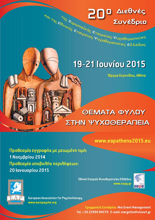 20ο Συνέδριο της Ευρωπαϊκής Εταιρείας Ψυχοθεραπείας (European Association for Psychotherapy – Ε.Α.Ρ.). 2014-09-16 15:58 https://www.eapathens2015.eu/#!welcome/c440